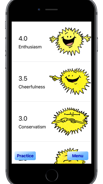 يقدم التطبيق عشرة مشاعر / مواقف مختلفة، بما في ذلك اللامبالاة، الحزن، الخوف، العداء الخفي، الغضب، العداء، الملل، الحفاظ على التقاليد، المرح والحماس. يترافق كل موقف مع ما يقرب من 20 مثال صوتي، مما يوفر للمستخدمين فهمًا أفضل للسلوك البشري الأساسي.